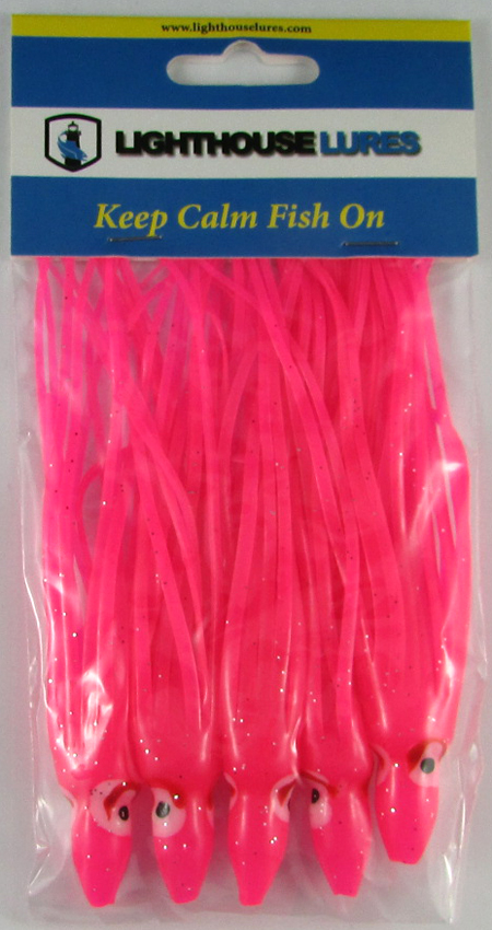 4.75" - Lighthouse Ultra UV PINK salmon hoochies 5/pk