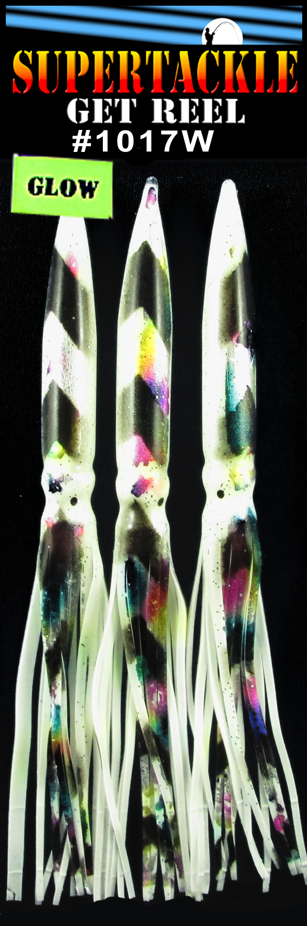 6.5" - Get Reel GLOW 1017 Coffin Nail salmon fishing hoochies, squid type 3/pk