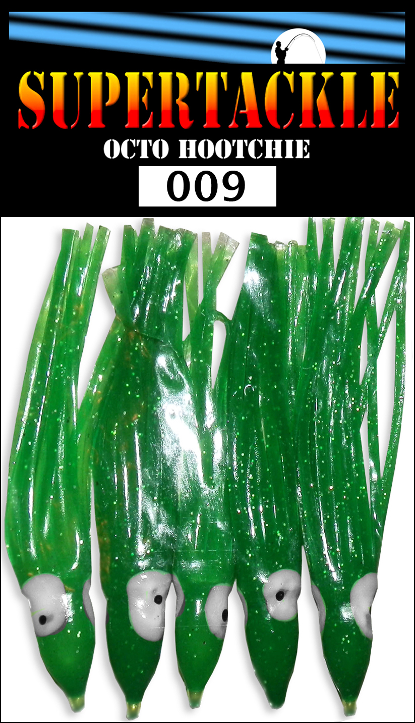3" - 009 Supertackle Dark Green fishing hoochies 5/pk