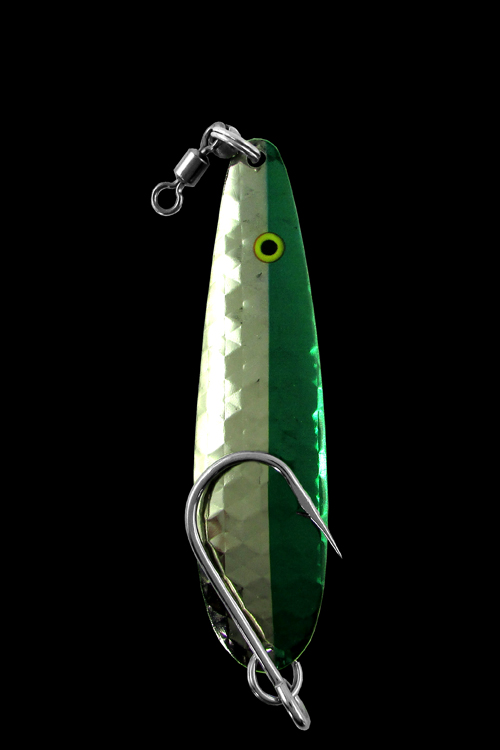 Green Chrome Hex LureCharge .65 volt 4" salmon fishing spoon