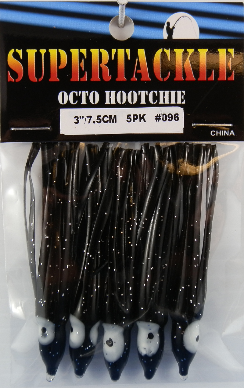 3" - 096 Supertackle LICORICE black fishing hoochies 5/pk