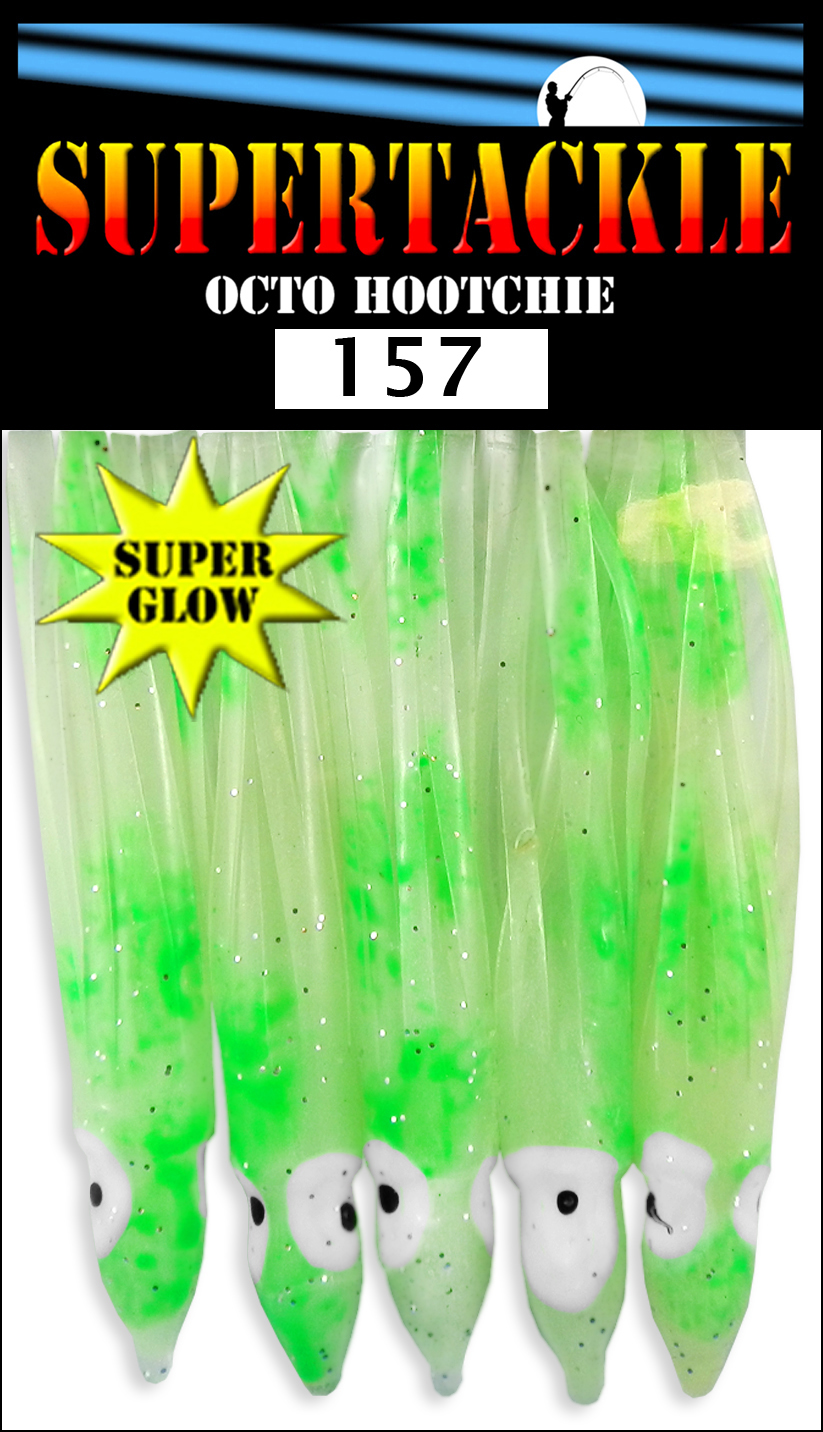 Lime dashes over milky white glow. Tube type hollow soft plastic fishing skirt. Octo type body which is easy to rig for many fishing styles. Good for salt & fresh water fishing. Trolling, jigging and casting lure component.These fishing liures do not have any swim action. The component will require a swim action enhancement if trolled or casted. Enhancers can range from dodger, flasher, spinner or plastic swim head. These can also be fitted with buzz spinners or mini LED lights.