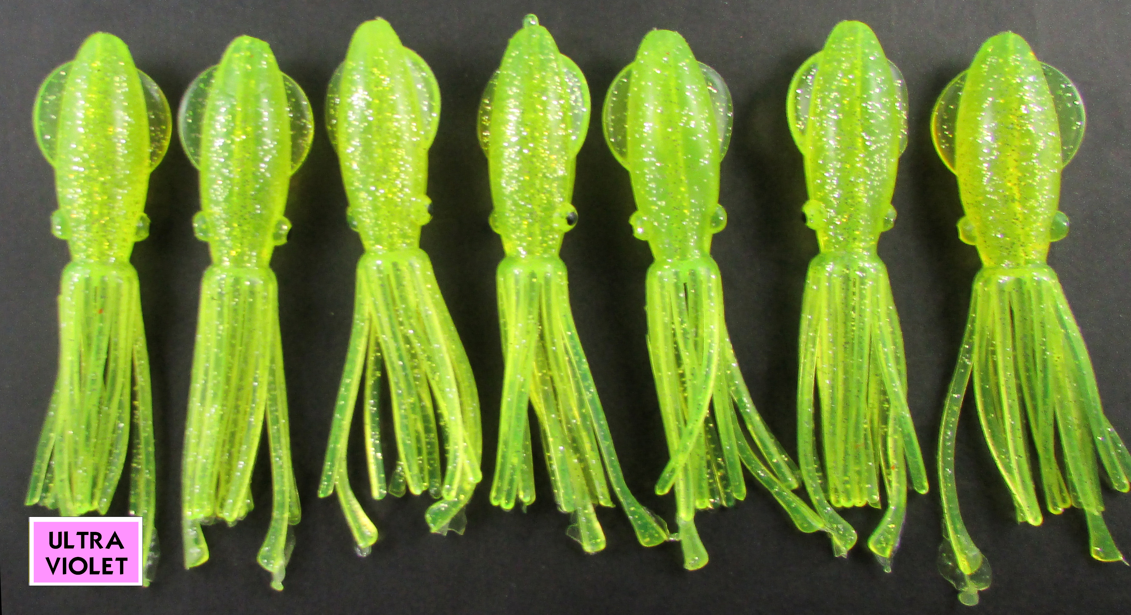 Chartreuse squid is a thick injection molded soft plastic fishing lure body. Preformed line hole makes the lure body easy to rig for trolling, casting or jigging type fishing.Universal lure is good for many types of predator and scavenger species of fish. Proven fishing tackle for Halibut, Cod, Ling, Salmon, Shark etc...