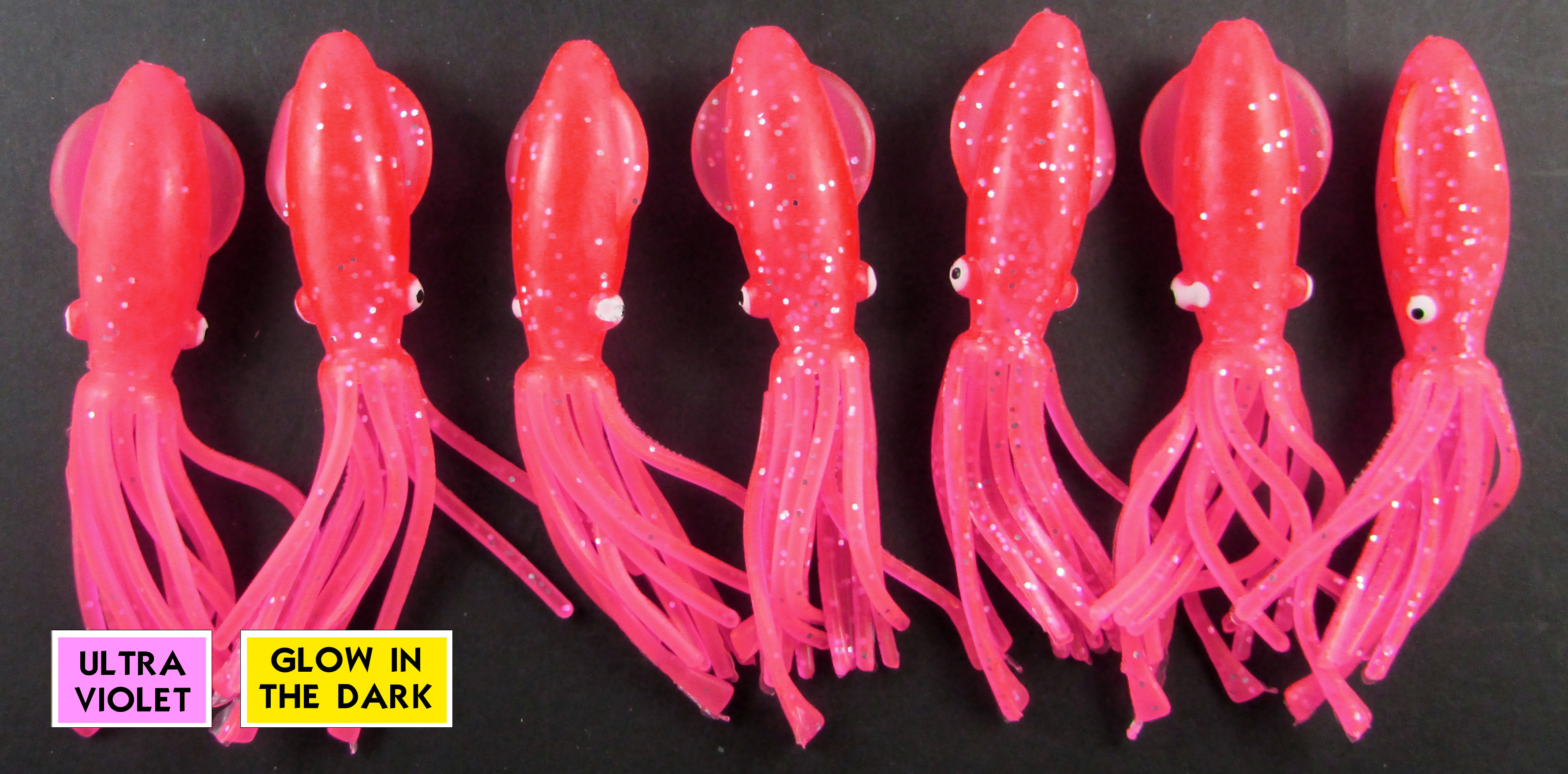 Pink Glow fishing squid is a thick injection molded soft plastic fishing lure body. Preformed line hole makes the lure body easy to rig for trolling, casting or jigging type fishing.Universal lure is good for many types of predator and scavenger species of fish. Proven fishing tackle for Halibut, Cod, Ling, Salmon, Shark etc...