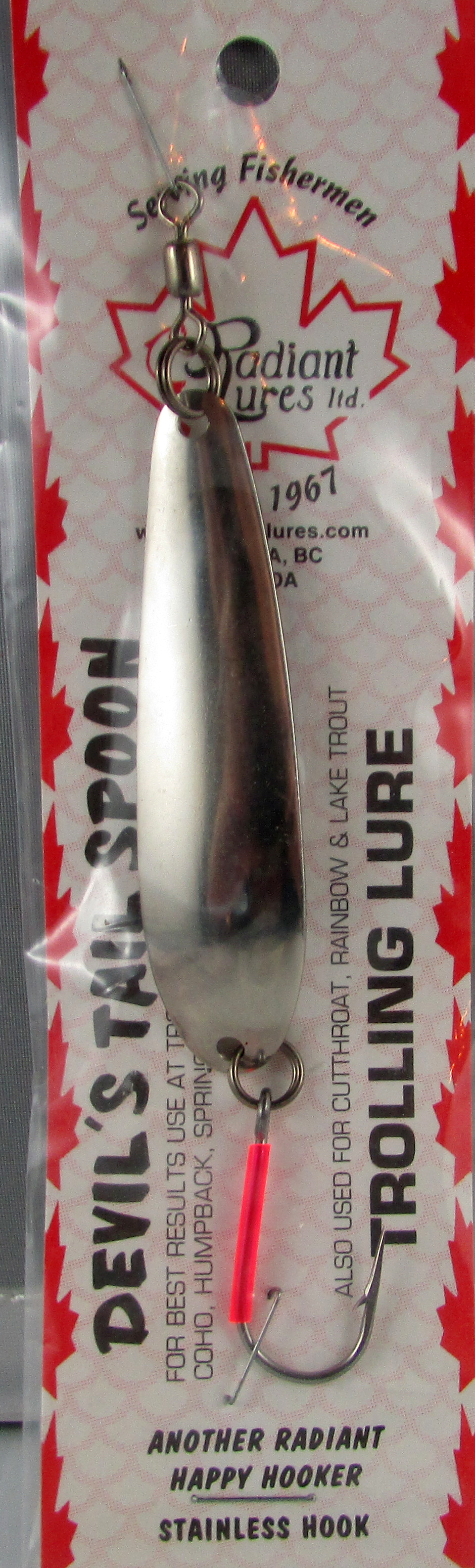 Salmon trolling spoon made of the best materials available. 2.75" blade length. SS Siwash Mustad hook. Ultra violet hook wrap.