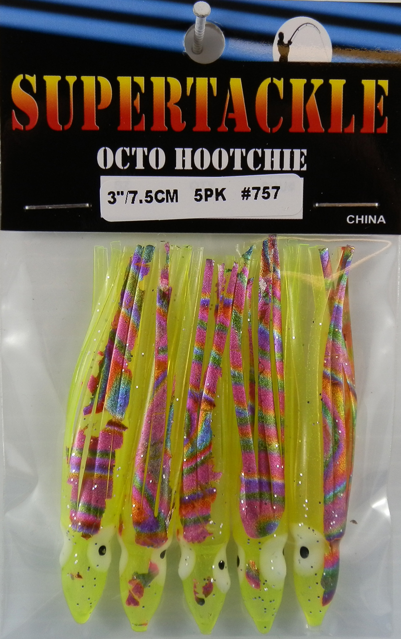 3" - 757 Supertackle FLASH yellow fishing hoochies 5/pk