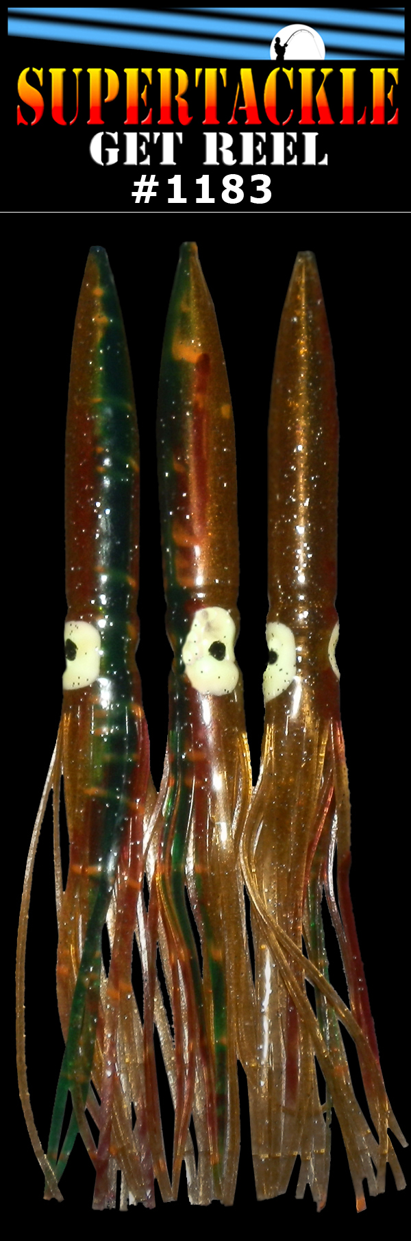 6.5" Get Reel 1183 Hail Mary UV salmon fishing hoochies, squid type 3/pk