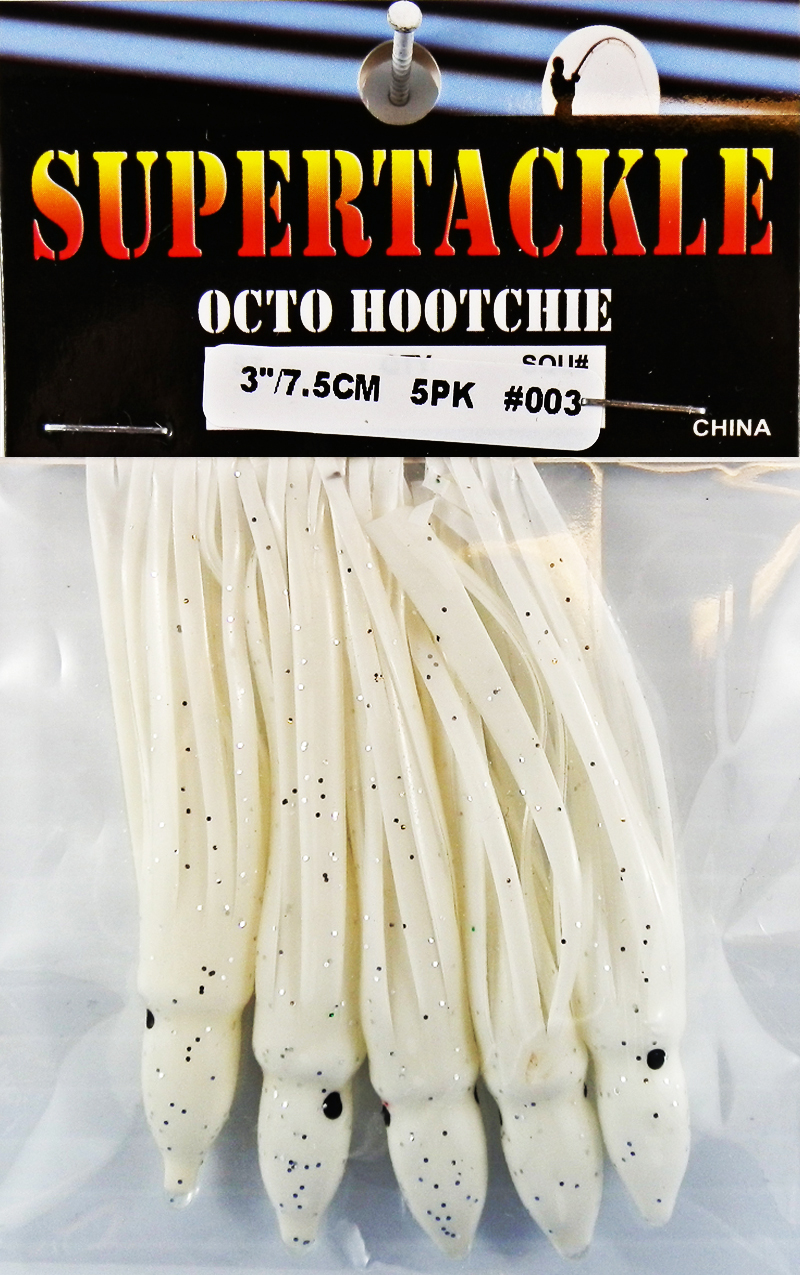 Tube type hollow white soft plastic fishing skirt. Octo type body which is easy to rig for many fishing styles. Good for salt & fresh water fishing. Trolling, jigging and casting lure component.These fishing liures do not have any swim action. The component will require a swim action enhancement if trolled or casted. Enhancers can range from dodger, flasher, spinner or plastic swim head. These can also be fitted with buzz spinners or mini LED lights.