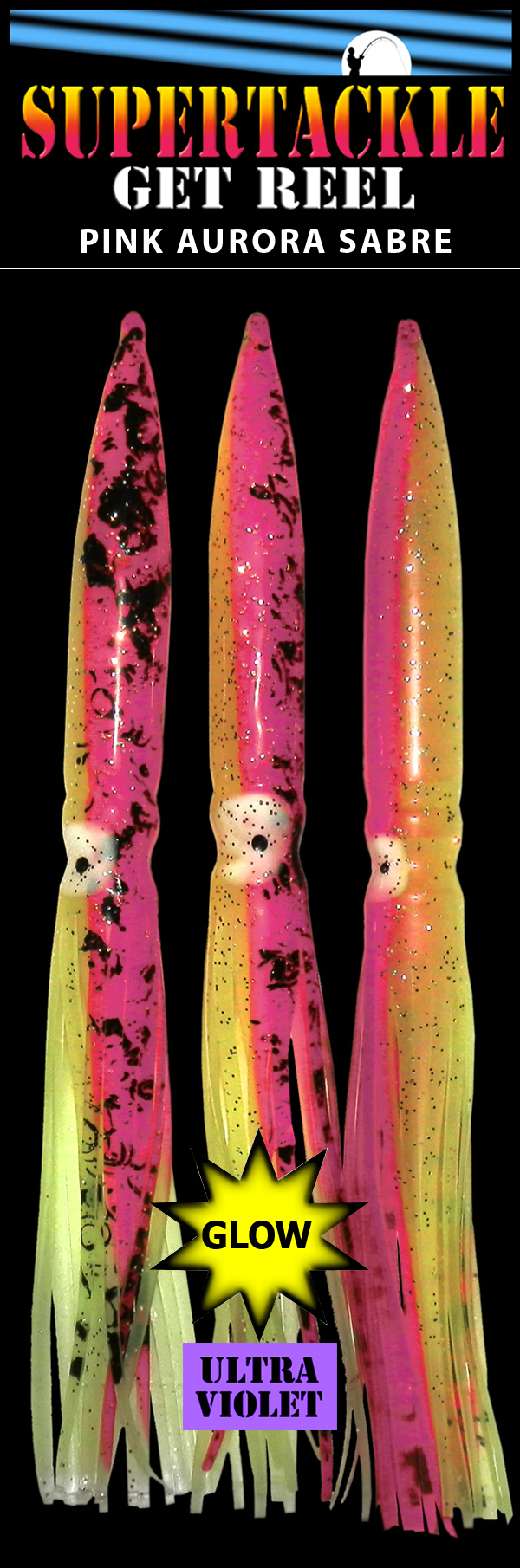Special aurora glow and ultra violet sabre with glow white belly. Hollow tube type soft plastic fishing bait. Ultra violet enhanced to increase visibility at deeper trolling depths. Proven effective for most species of salmon and bottom dwelling fish. Easily rigged with beads or lead and a hook.Proven on the west coast for large salmon and halibut. The body style has no swim action and would require a fishing flasher when being trolled. Fishing successfully with a flasher setup would also require a downrigger and release system.