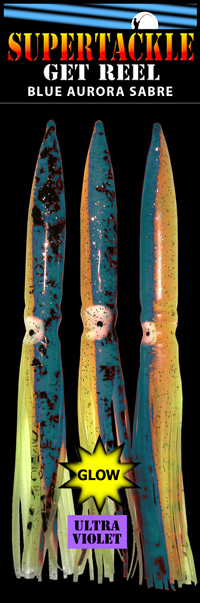 Special aurora glow and ultra violet sabre with glow white belly. Hollow tube type soft plastic fishing bait. Ultra violet enhanced to increase visibility at deeper trolling depths. Proven effective for most species of salmon and bottom dwelling fish. Easily rigged with beads or lead and a hook.Proven on the west coast for large salmon and halibut. The body style has no swim action and would require a fishing flasher when being trolled. Fishing successfully with a flasher setup would also require a downrigger and release system.