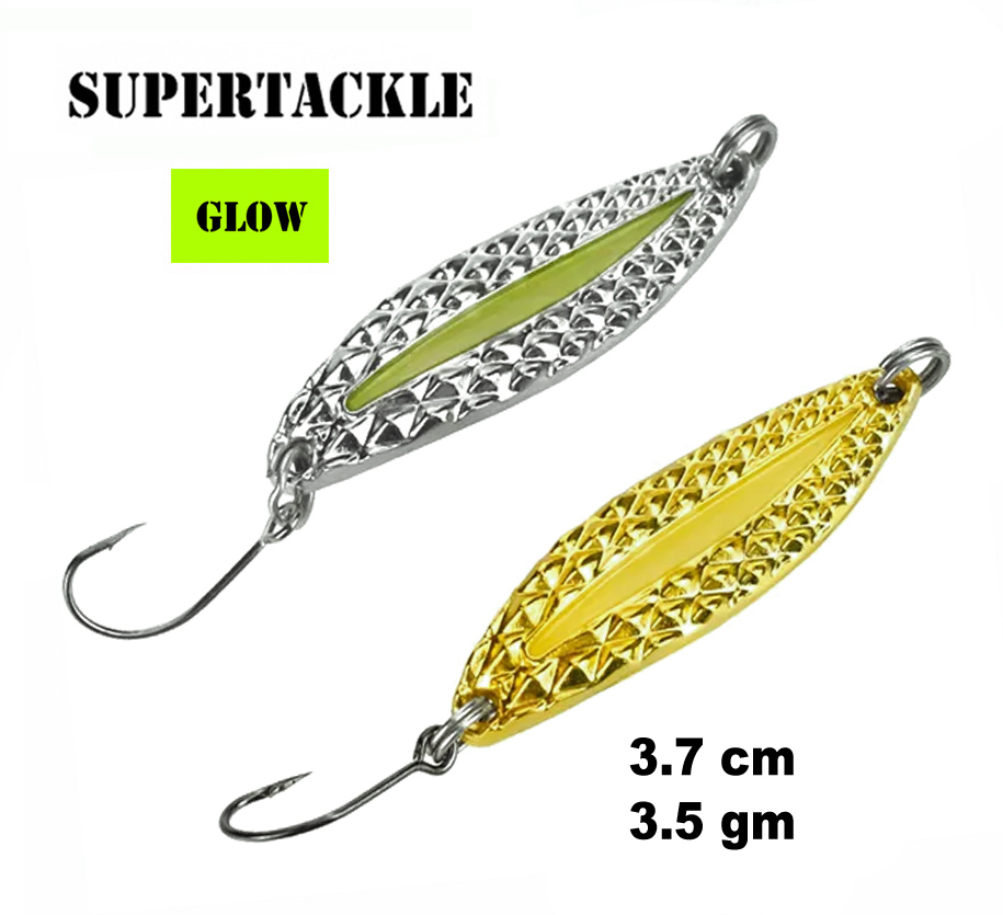Metal spoon, fishing lure with laser sharp single hook. Good for casting or trolling in freshwater. Also good for inshore salt water fishing for smaller species for Bass, Cod, Mackerel, fluke and other.