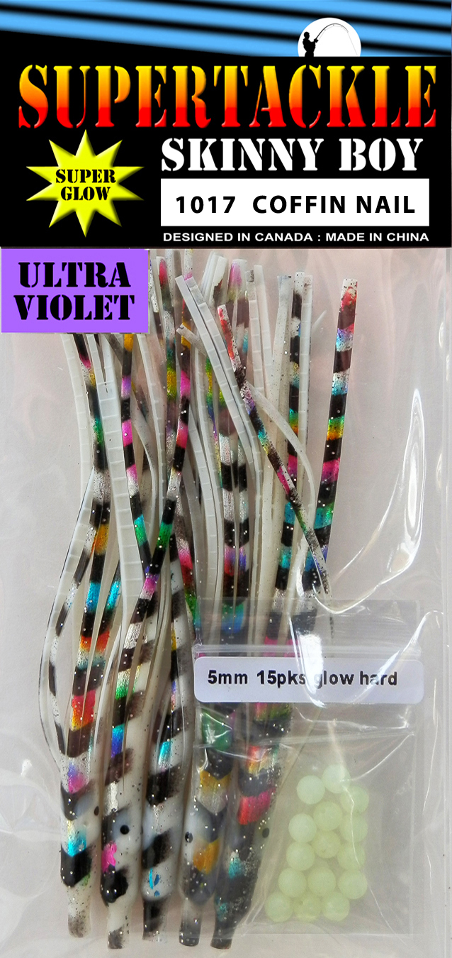 4.5" Supertackle Glow #1017 COFFIN NAIL Skinny Boy, salmon trolling needlefish 5/pk