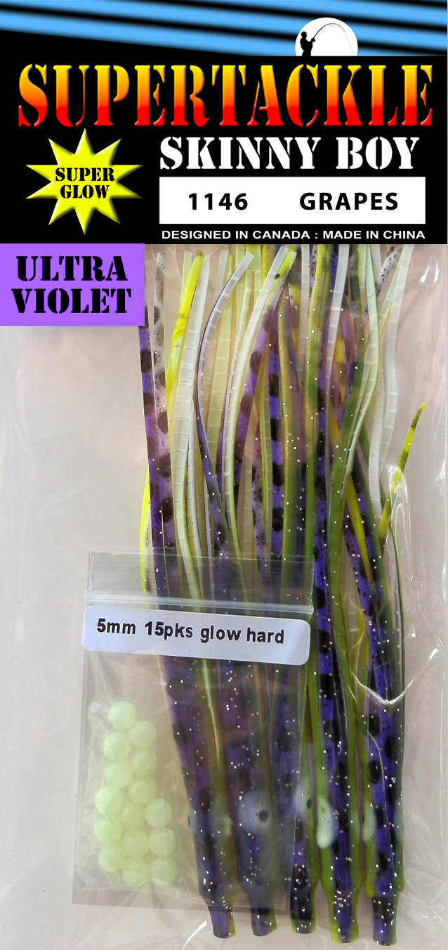 4.5" Supertackle Glow #1146 GRAPES Skinny Boy, salmon trolling needlefish 5/pk