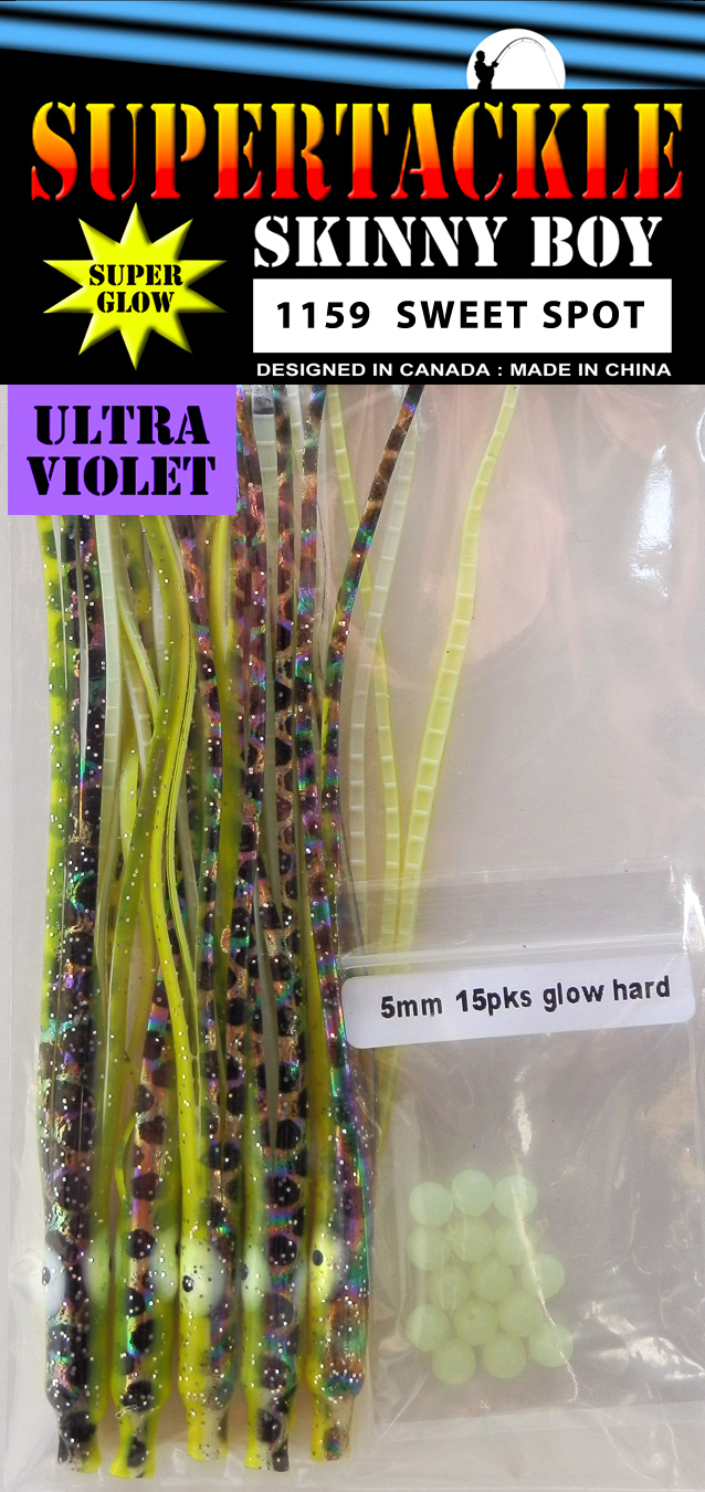4.5" Supertackle Glow #1159 SWEET SPOT Skinny Boy, salmon trolling needlefish 5/pk