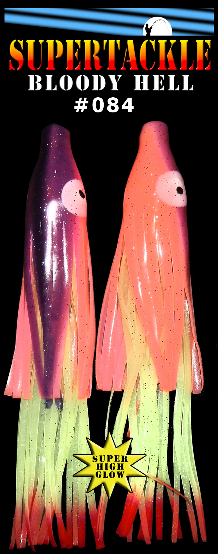 7.5" BLOODY HELL 084 Nurple - Double Skirt - Halibut glow hoochies 2pk