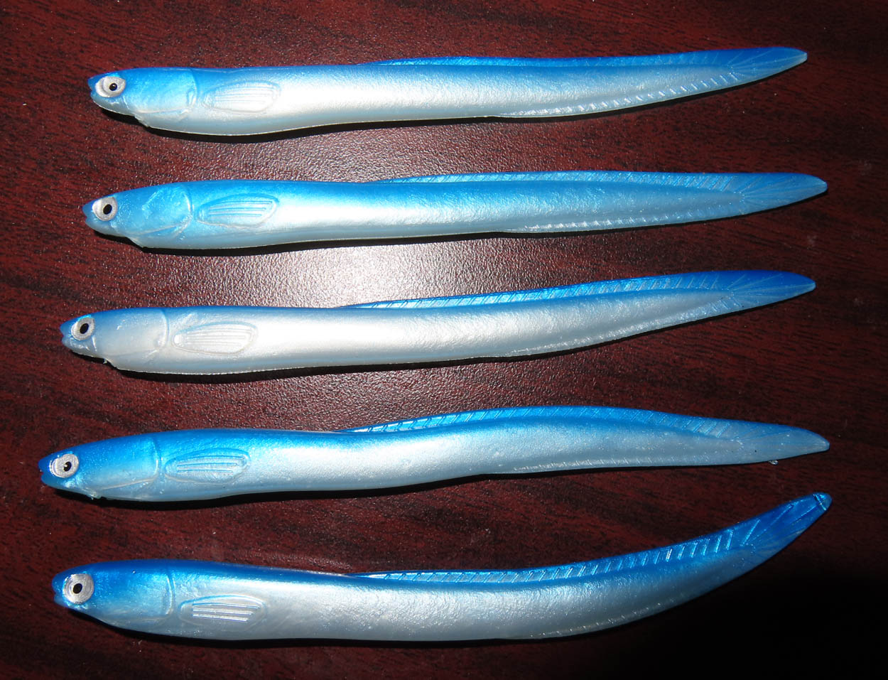 Solid injection molded soft plastics. Realistic painted eyes. Durable & bendable. Suggest rigging with twin octopus type hooks. Not a castable weight. Suggest trolling with an action enhancer such as Wigglefin. Could be fished in many ways.High UV