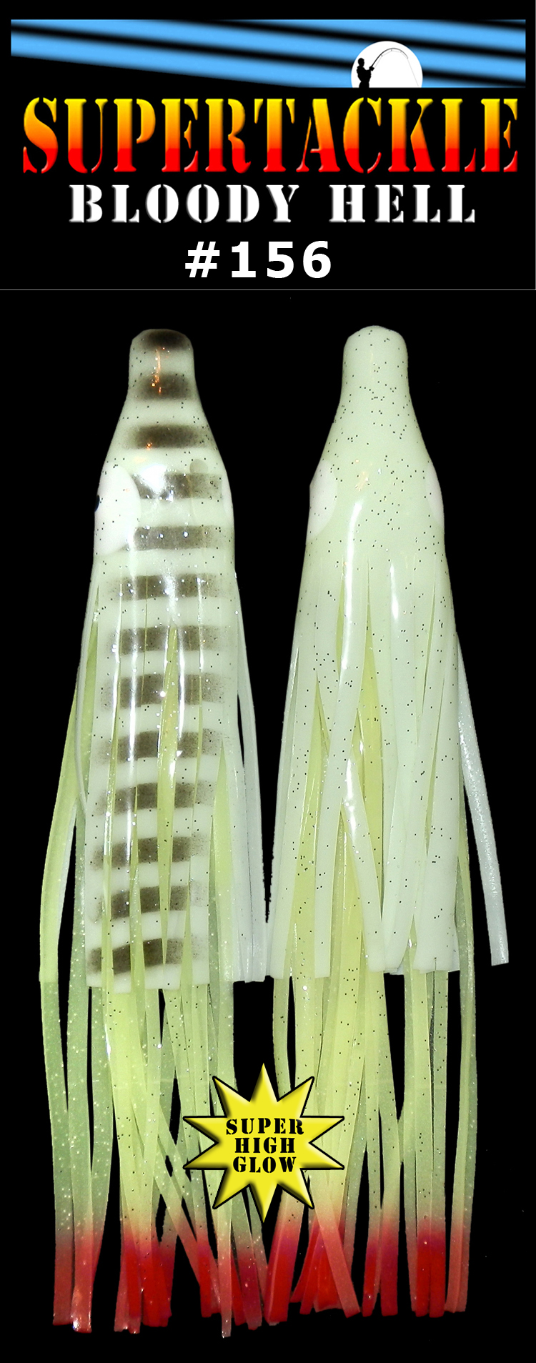 7.5" BLOODY HELL 156 Ghost Shrimp - Double Skirt - Halibut glow hoochies 2pk