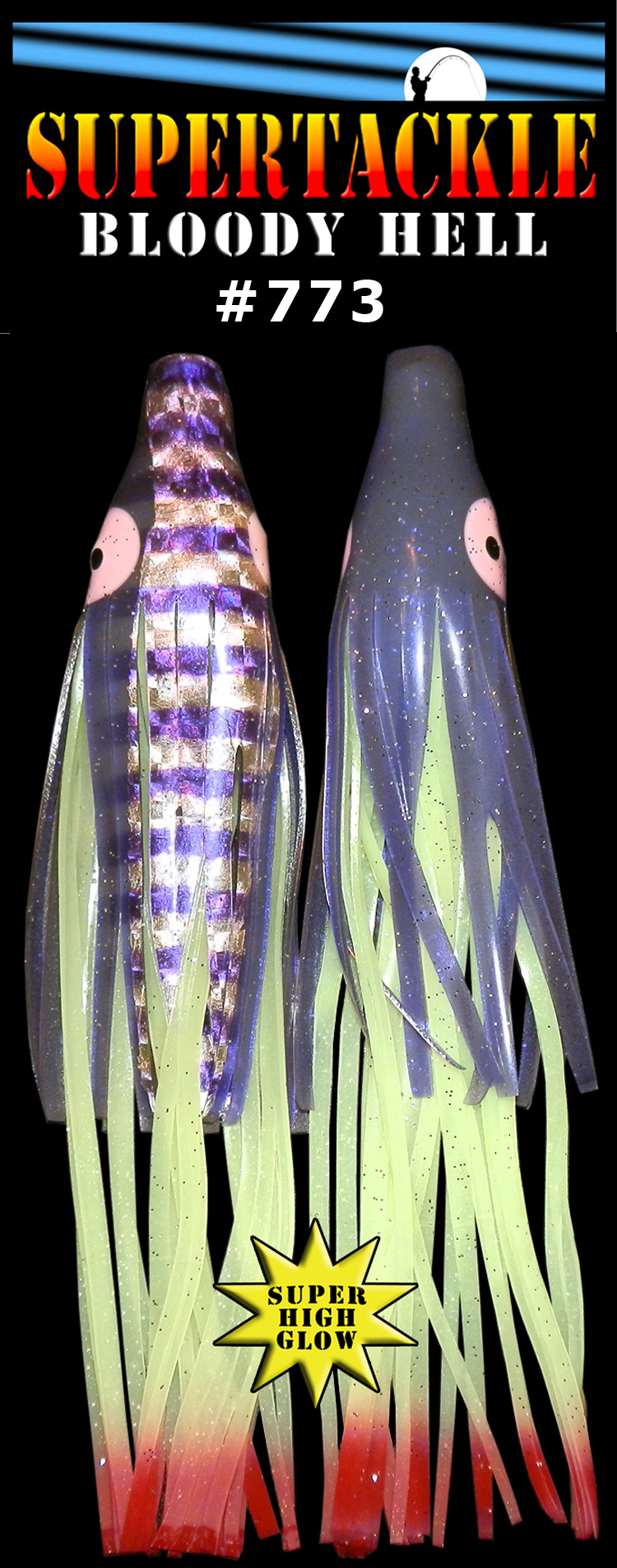 7.5" BLOODY HELL 773 Jaws - Double Skirt - Halibut glow hoochies 2pk