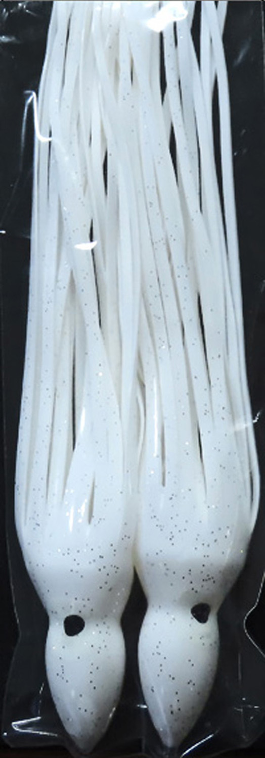 White with Glitter.Hollow, soft plastic trolling or jigging lure. Easily rigged with beads or lead sinkers and a hook. These are commonly referred to as a hootchie, hoochies or octopus skirt.