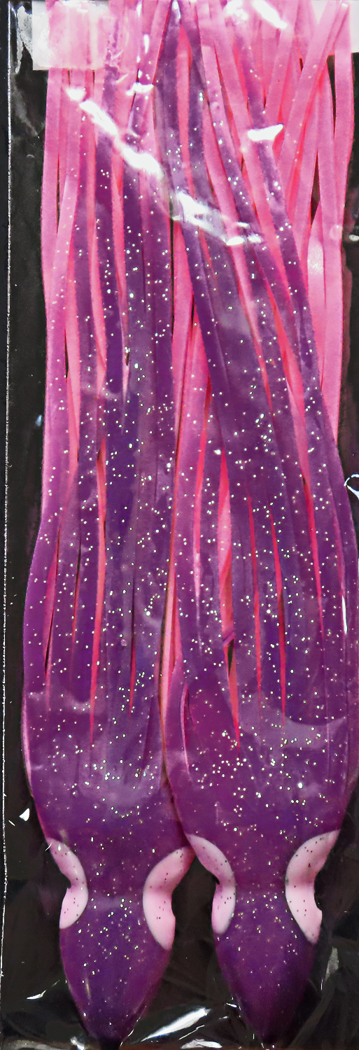 Purple over Hot Pink.Hollow, soft plastic trolling or jigging lure. Easily rigged with beads or lead sinkers and a hook. These are commonly referred to as a hootchies, hoochie or octopus skirt.