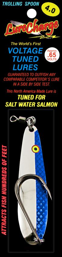Blue Chrome LureCharge .65 volt 4" salmon fishing spoon
