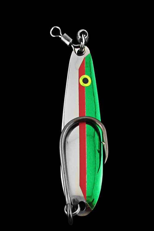 A matched metal sacrificial anode of a specific alloy ensures electrical continuity through the entire length of the lure. The combination of metals within the lure creates a tuned .65 galvanic cell. It is proven that positive or negative electric fields around a fishing boat or lure will either attract or offend predator fish.