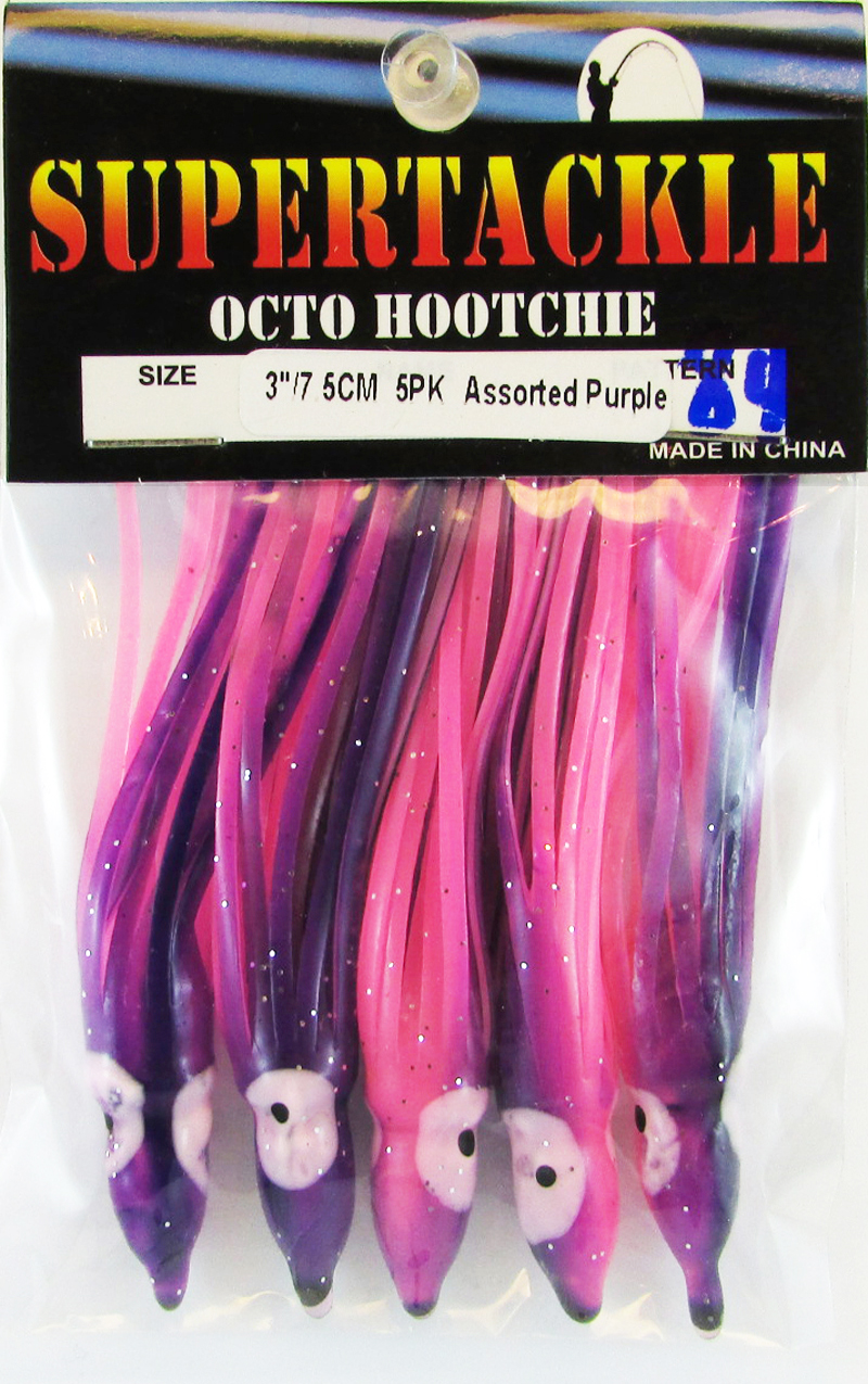 Purple & pink pattern. Tube type hollow soft plastic fishing skirt. Tube type hollow soft plastic fishing skirt. Octo type body which is easy to rig for many fishing styles. Good for salt & fresh water fishing. Trolling, jigging and casting lure component.These fishing liures do not have any swim action. The component will require a swim action enhancement if trolled or casted. Enhancers can range from dodger, flasher, spinner or plastic swim head. These can also be fitted with buzz spinners or mini LED lights.