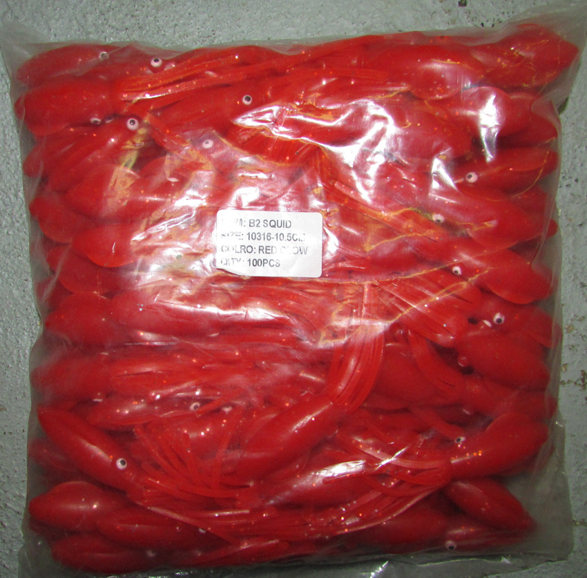 Supertackle 4" squid is a thick injection molded soft plastic fishing lure body. Preformed line hole makes the lure body easy to rig for trolling, casting or jigging type fishing.Universal lure is good for many types of predator and scavenger species of fish. Proven fishing tackle for Halibut, Fluke, Cod, Ling, Salmon, Shark etc...
